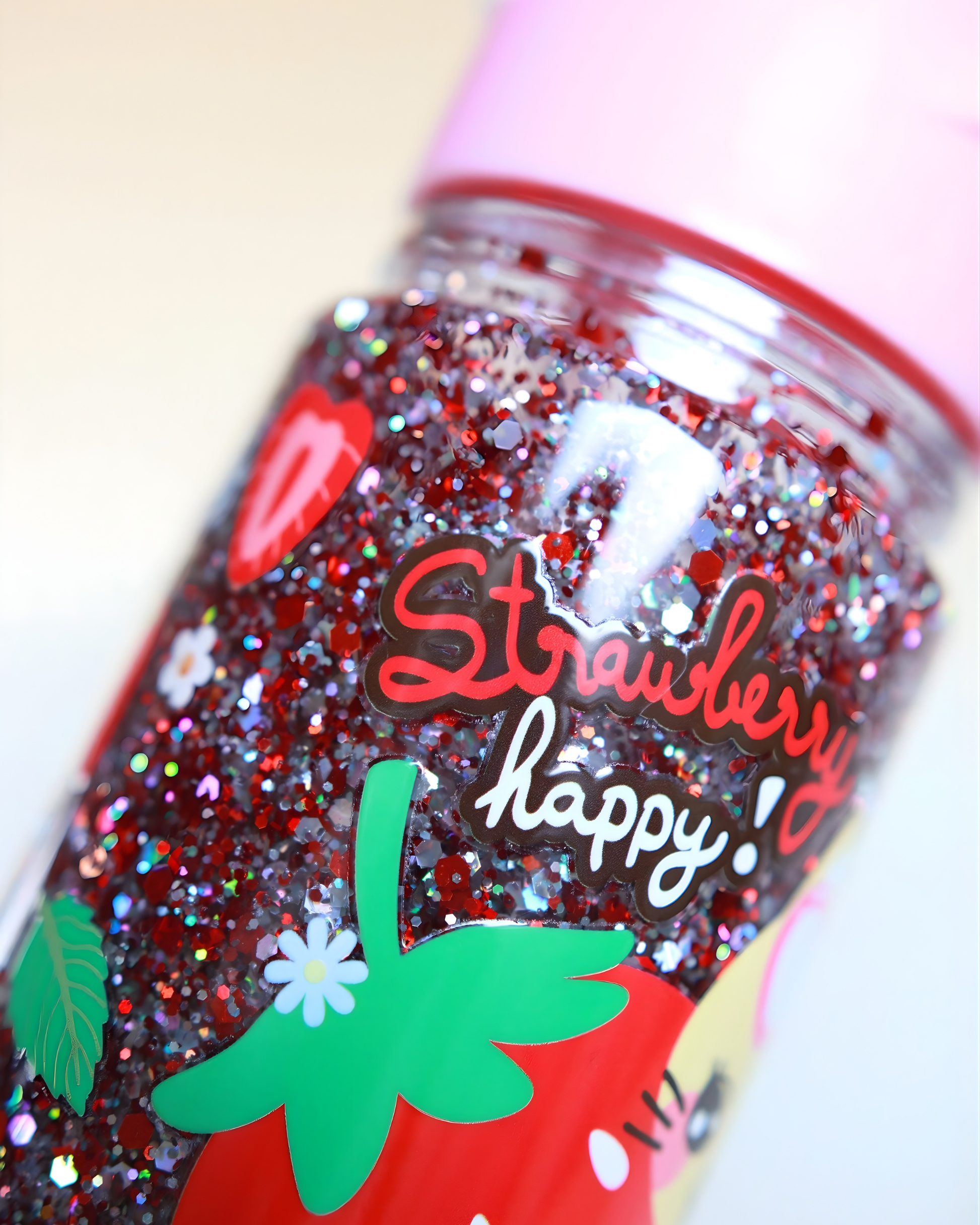 - Type : Gourde double paroi à paillettes rouges et roses (effet fluide et scintillant)