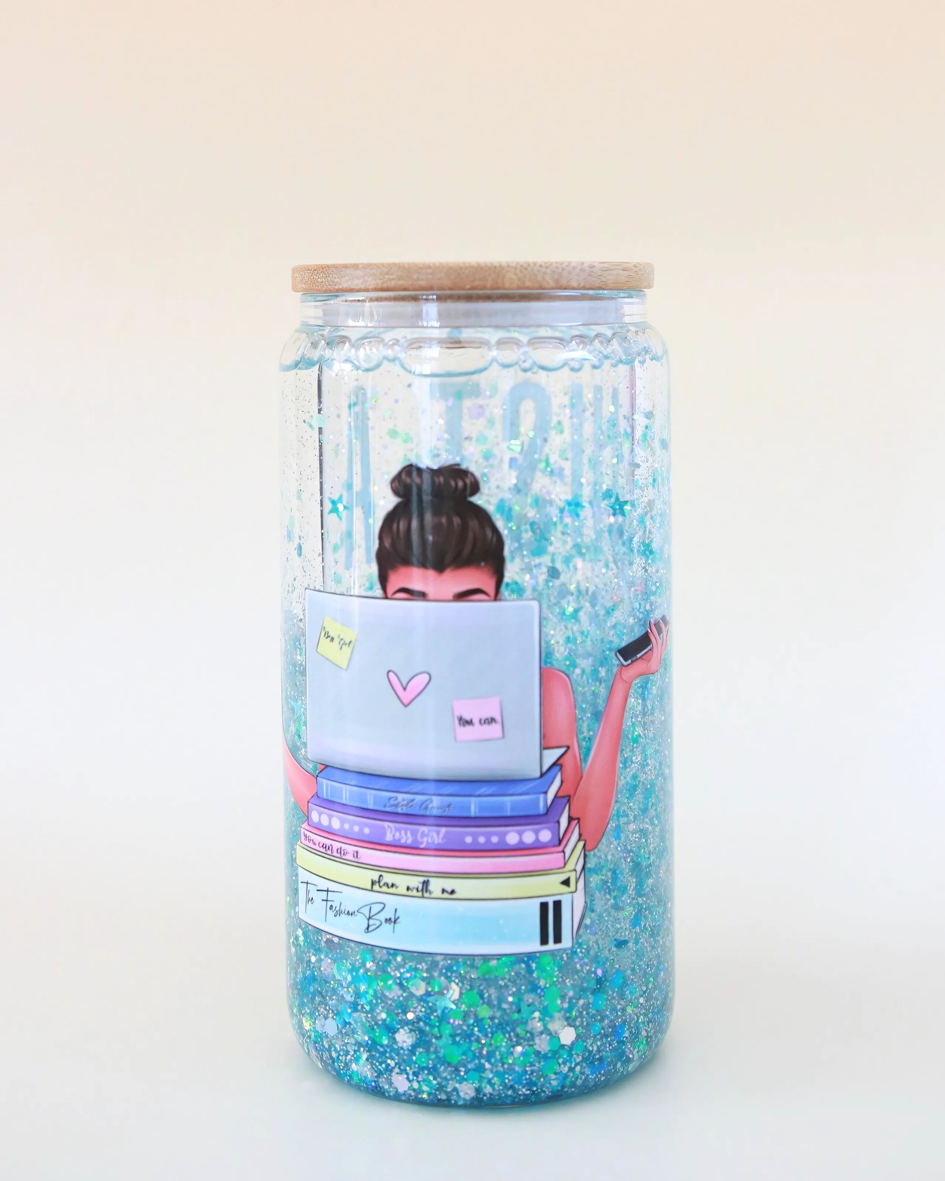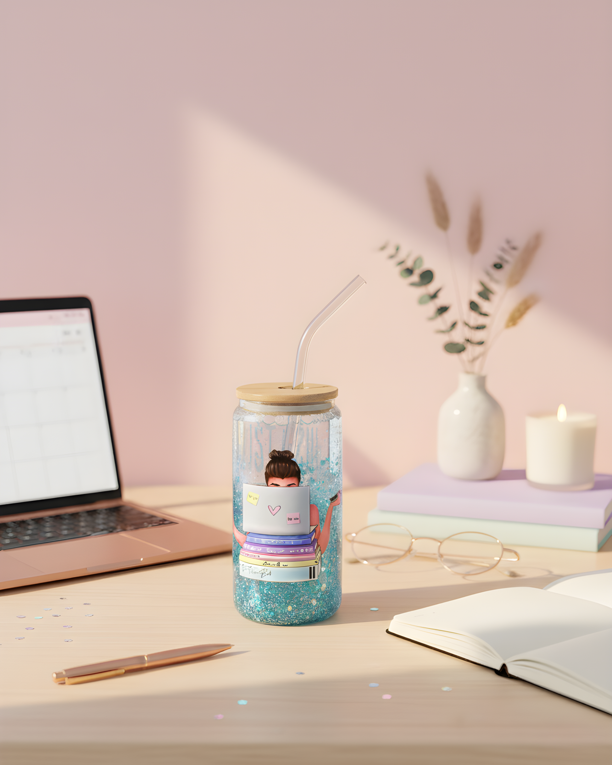 Bossy Glow 💻✨ un gobelet qui célèbre les esprits ambitieux, les rêveuses organisées et toutes celles qui bossent avec style. Entre douceur pastel et éclat de paillettes suspendues, il inspire la concentration, la créativité et la confiance. Parce que même derrière ton ordi, tu mérites ton moment de glow. 💅🏼🌸