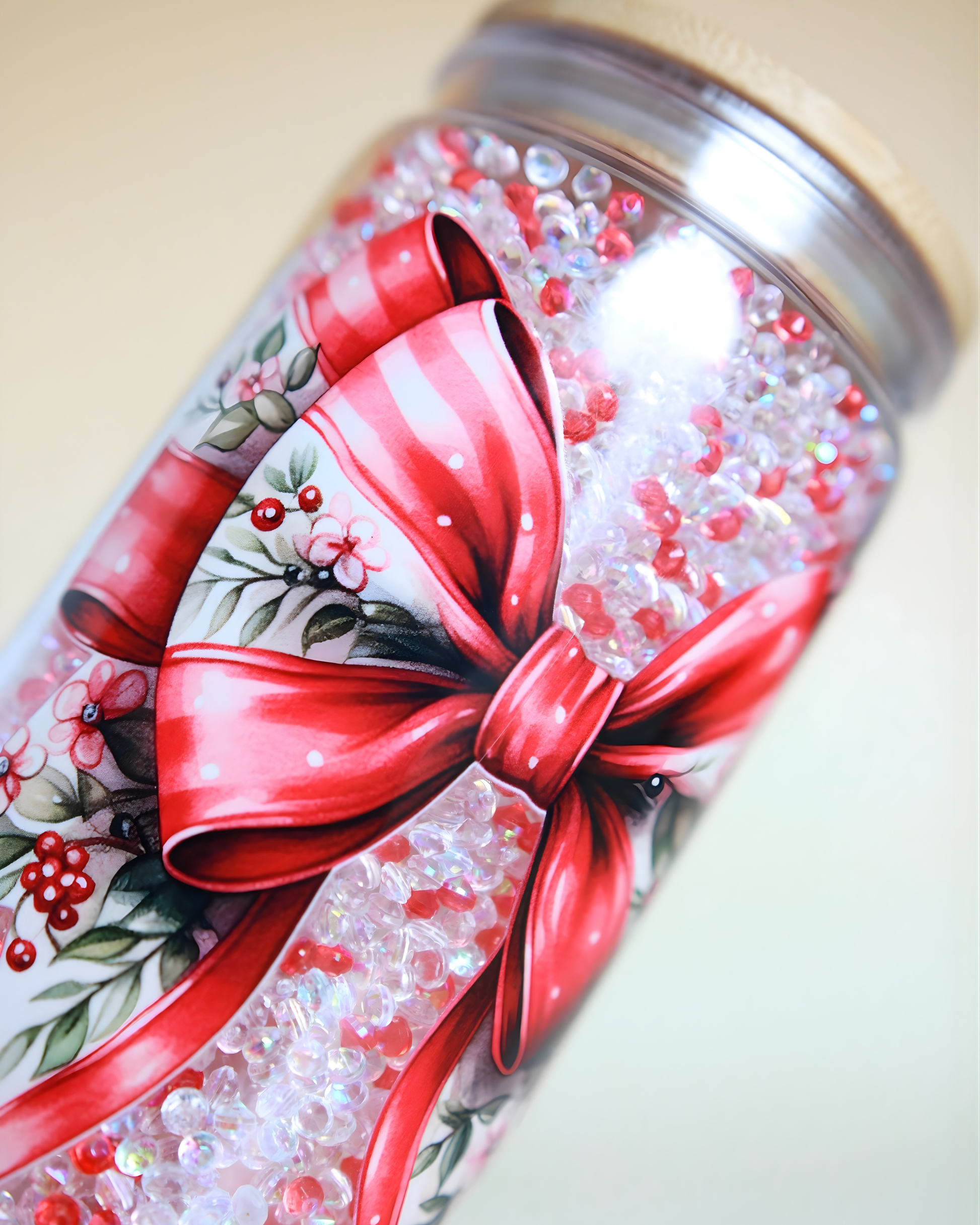 Crimson Bow incarne la magie élégante des fêtes : son rouge profond, ses nœuds satinés et ses strass scintillants capturent tout l’esprit de Noël dans un éclat glamour et intemporel. Un gobelet audacieux et raffiné, pour celles qui aiment briller sans modération. ✨