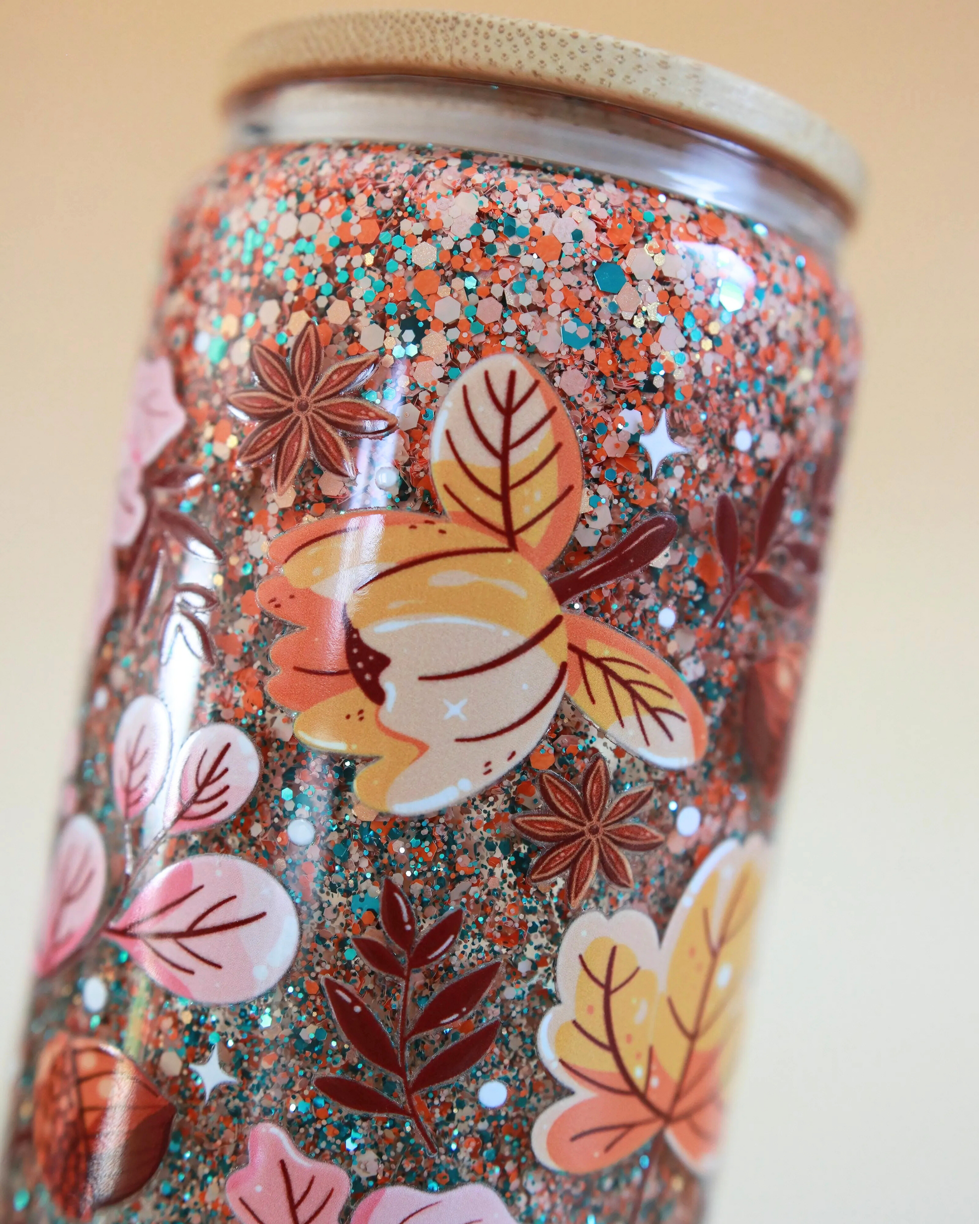 Golden Leaves, c’est l’automne capturé dans un gobelet. Un tourbillon de feuilles dorées, de lumière tamisée et de paillettes qui dansent lentement, comme un rayon de soleil entre deux nuages. Parfait pour savourer ton café, ton chai latte ou ton chocolat chaud dans une ambiance cocooning et dorée. 🍁✨