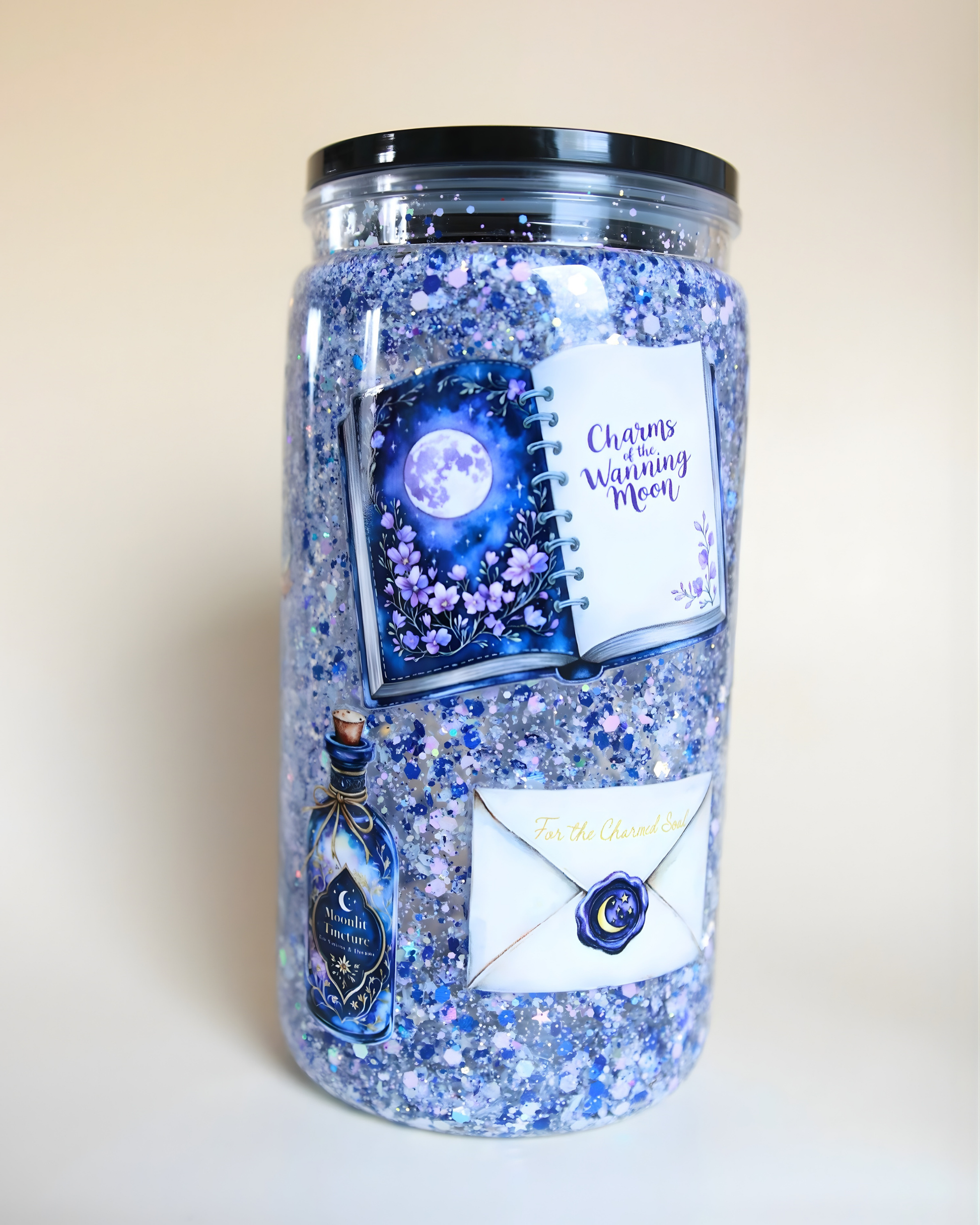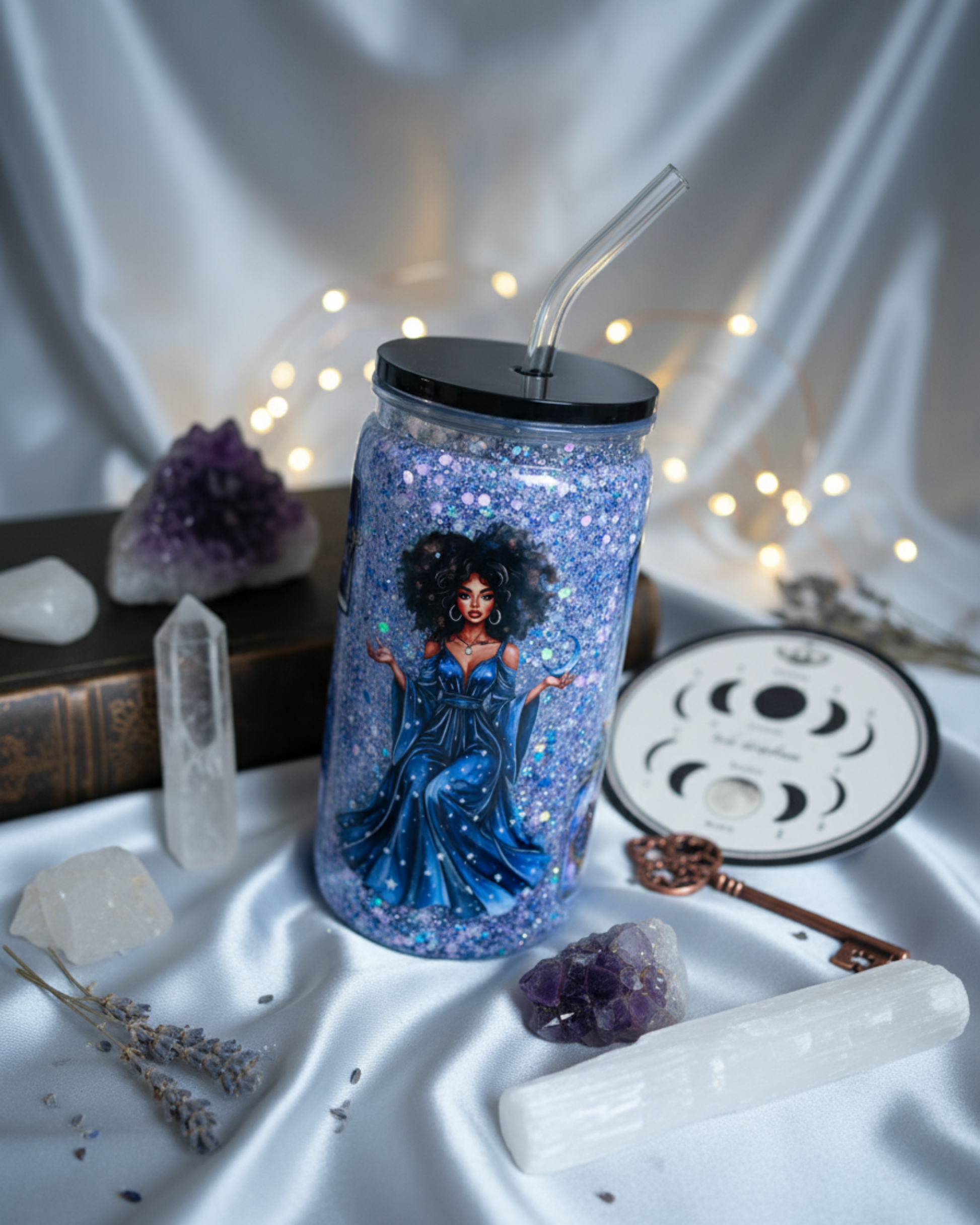 Lunar Enchantress 💫 est une ode à la douceur mystique, à ces soirs d’étoiles où tout semble possible. Elle évoque les femmes qui brillent en silence, celles qui écoutent leur intuition et transforment les petits riens en éclats d’univers. Un gobelet comme un talisman : pour boire un peu de calme, de confiance et de lumière intérieure. ✨