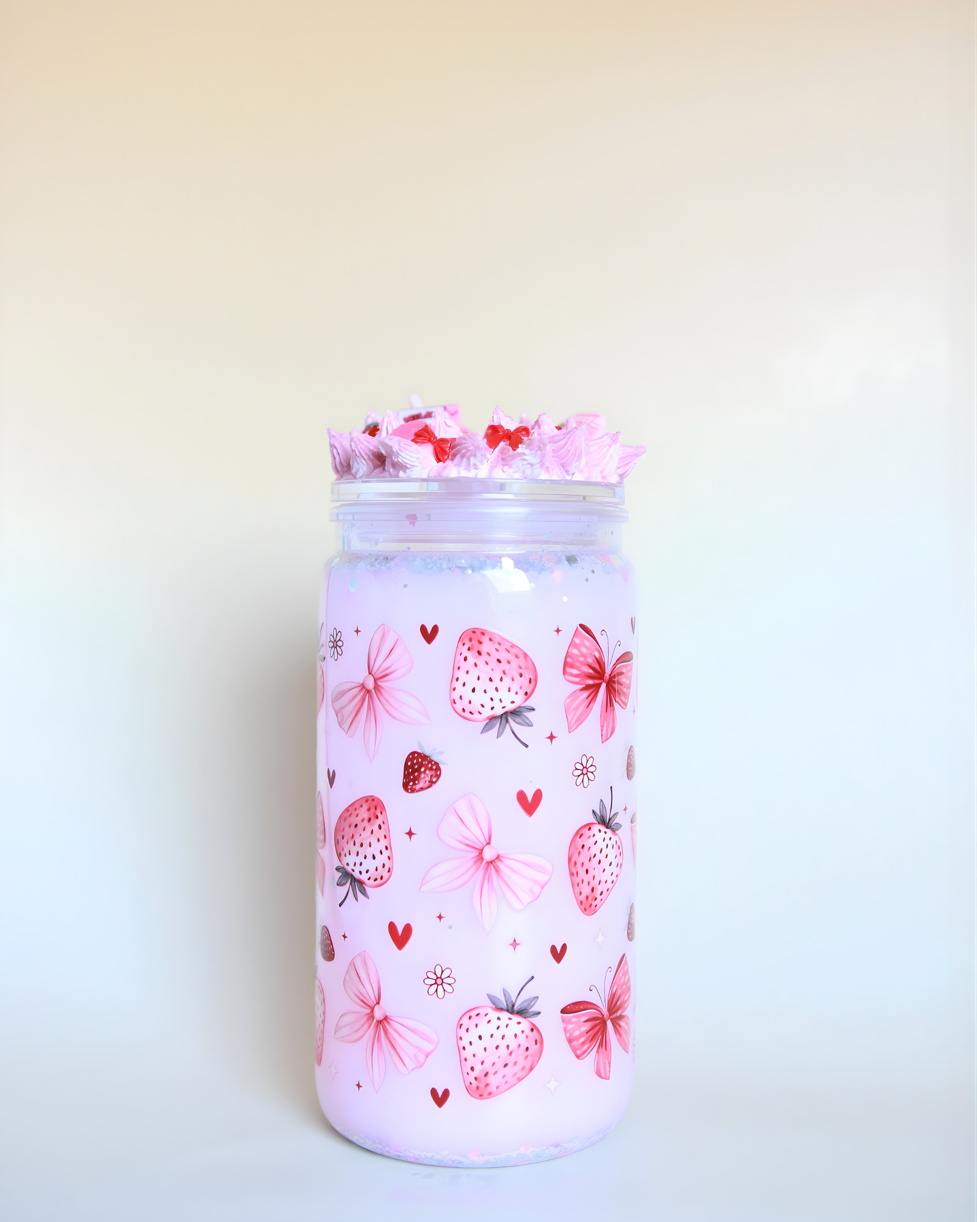 Milky Pinky, c’est le gobelet qui transforme chaque pause boisson en moment câlin. Son effet lait à la fraise scintillant, son rose tendre et son couvercle crème entièrement décoré à la main en font une création unique, ultra gourmande et 100% Bubble & Glitter. Un régal visuel qui donne envie de sourire… et de siroter encore plus fort 💗🍓