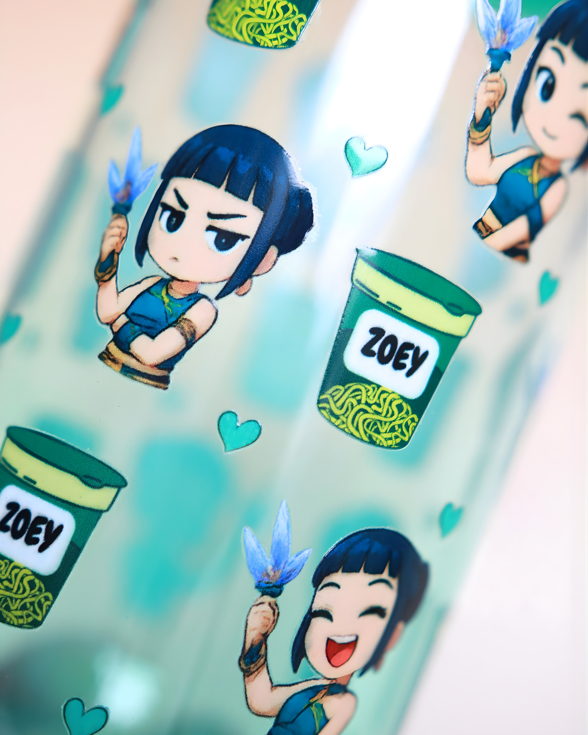 Noodle Fury, c’est LE gobelet des personnalités piquantes, malicieuses et pleines de caractère ! Avec son design inspiré des illustrations manga et ses petits pots de ramen trop mignons, il apporte une dose d’humour et de fun à chaque boisson. Son dégradé vert transparent lui donne un effet frais et lumineux qui se marie parfaitement avec ses expressions pleines de sass.