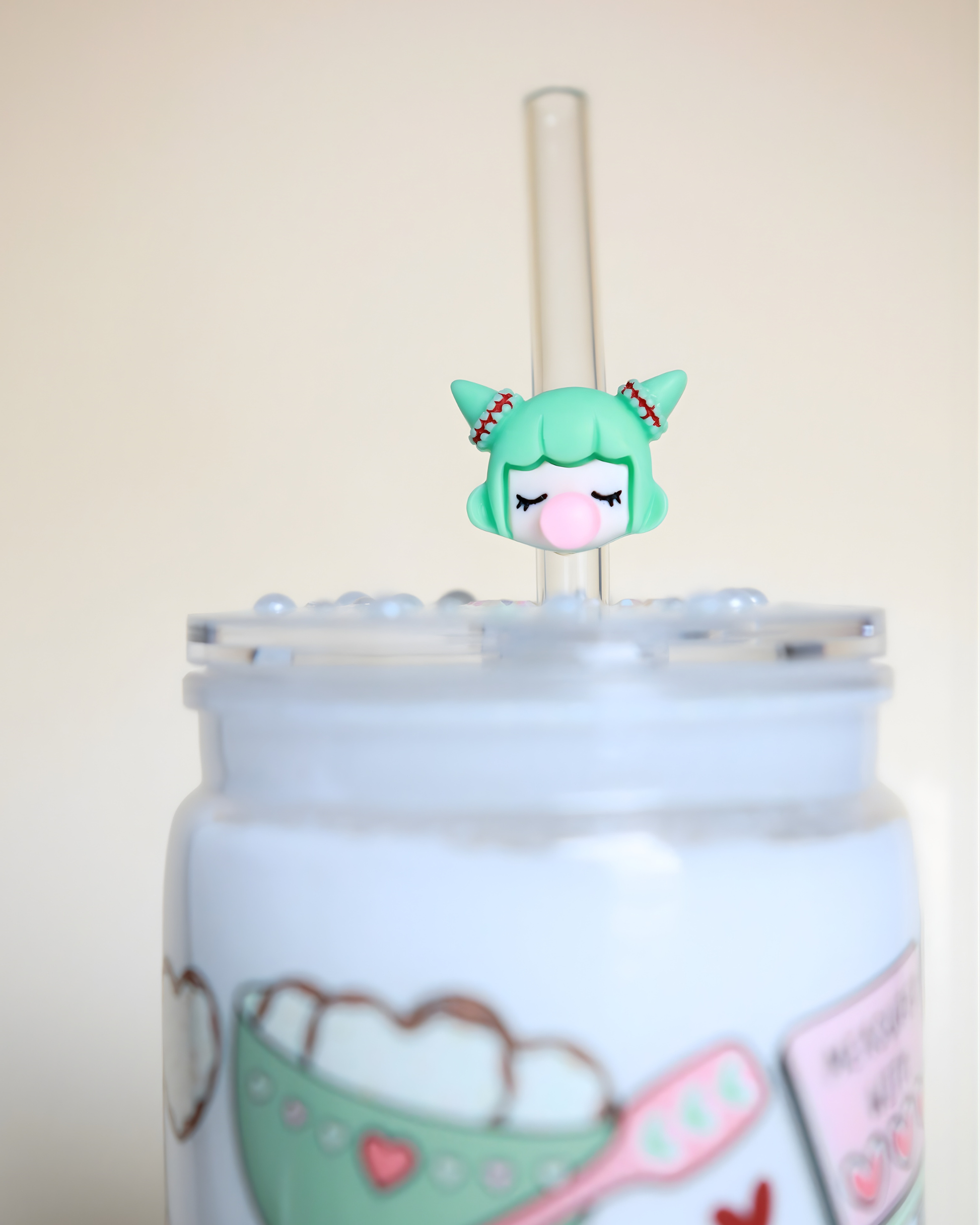 - Décoration : Petit personnage kawaii vert en acrylique, fixé à la main en gel UV