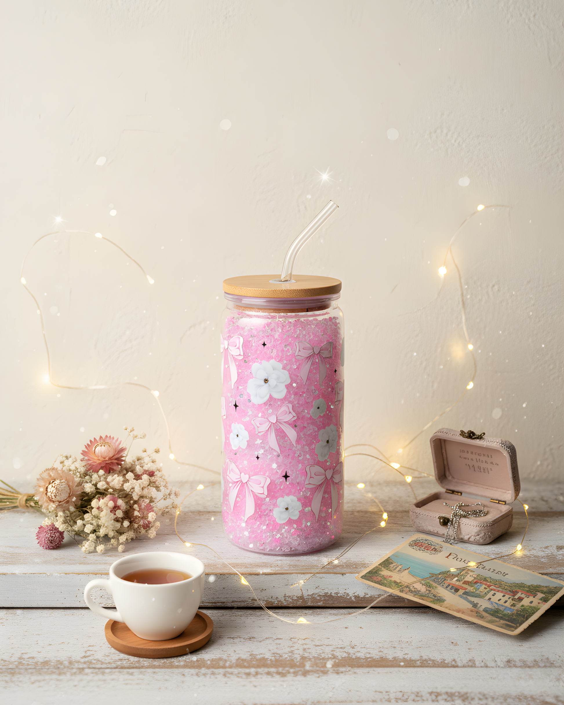 Rosé Shine une explosion de douceur et d’élégance dans un océan de reflets scintillants. Ce gobelet mêle subtilement la tendresse du rose poudré à la brillance des strass acryliques, pour un rendu chic, lumineux et 100 % girly. Parfait pour illuminer ton quotidien avec style et légèreté.